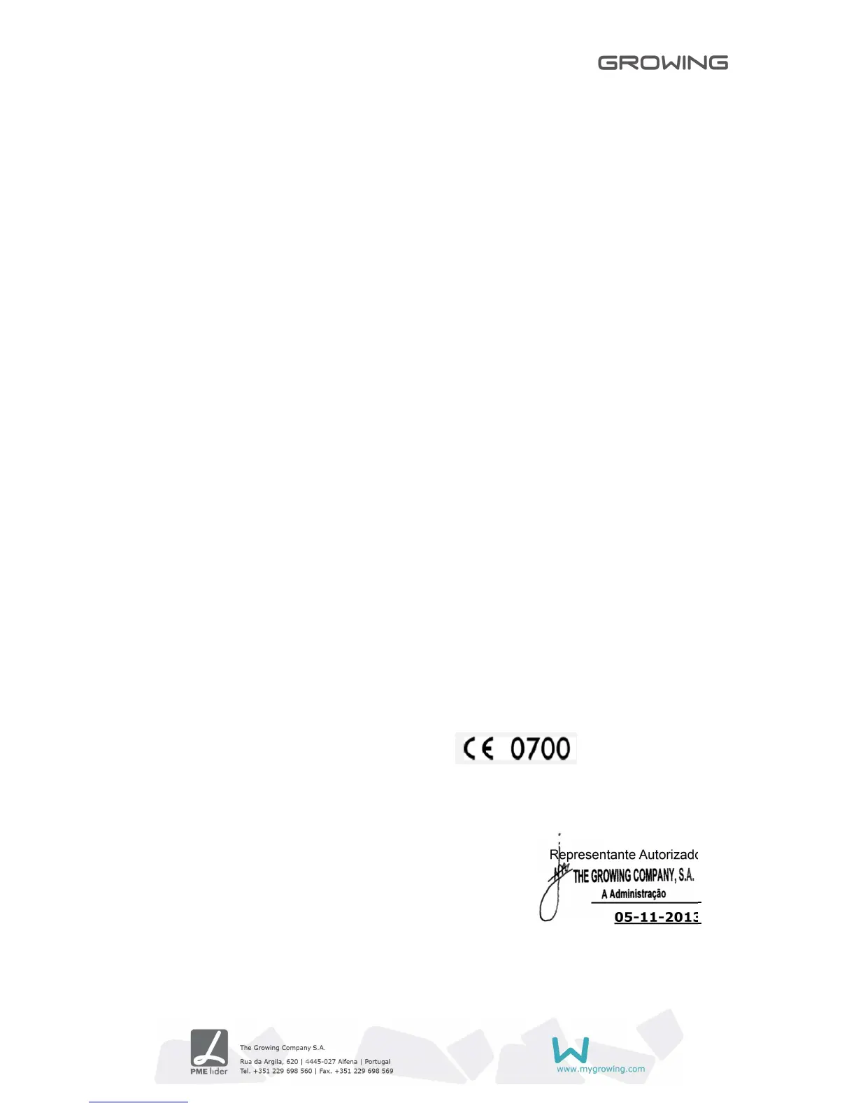 Representante Autorizado: The Growing Company S,A,