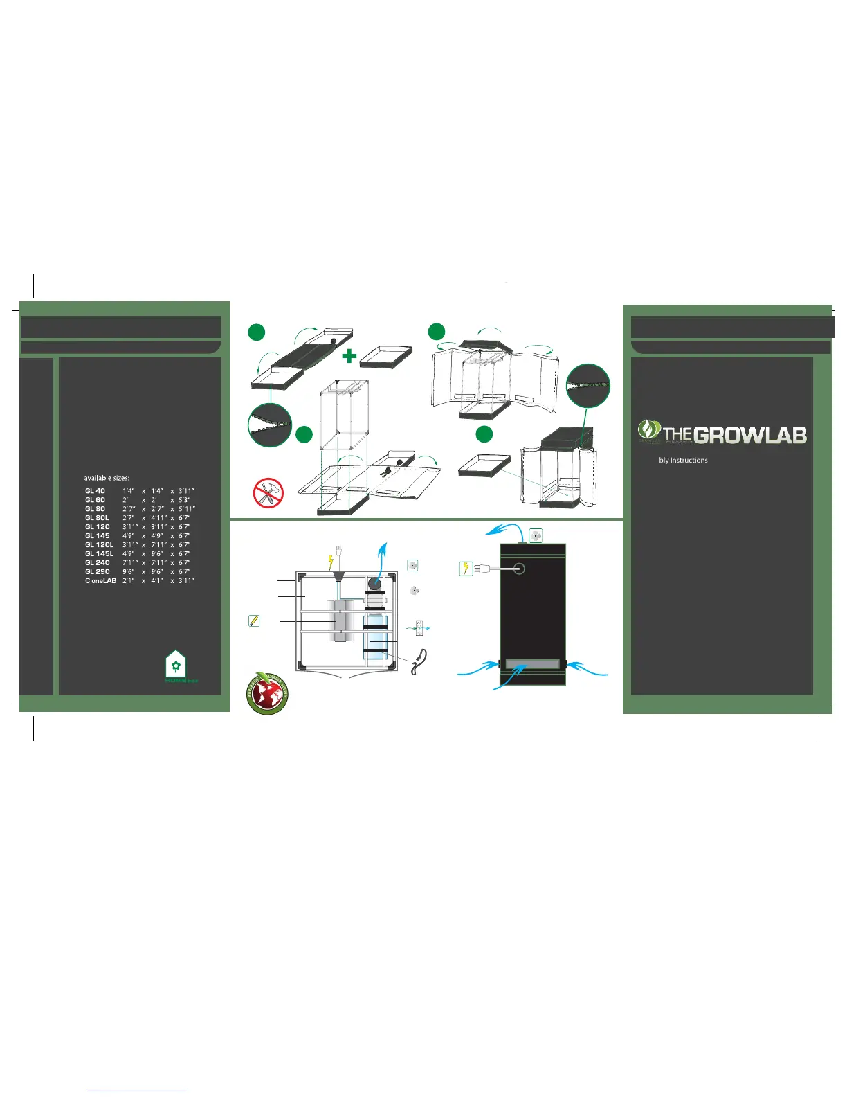 GrowLab GL 40 - Grow Tent Features and Specifications; Available Grow Tent Sizes; Tent Interior and Setup Views