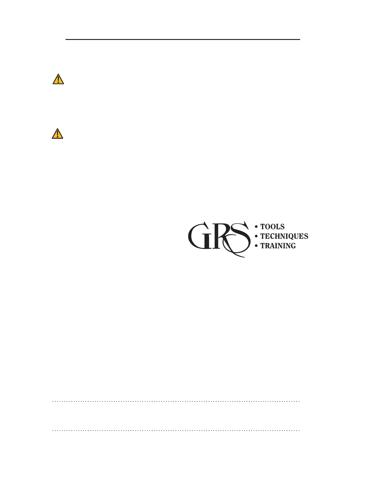 warranty covering parts and labor. Contact GRS or an authorized GRS dealer