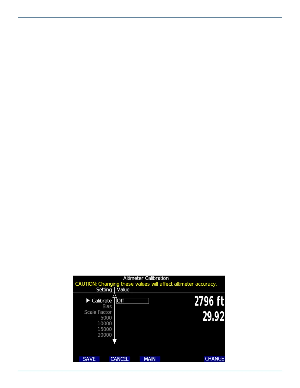 settings. The altimeter calibration will be turned off automatically when this page is exited.