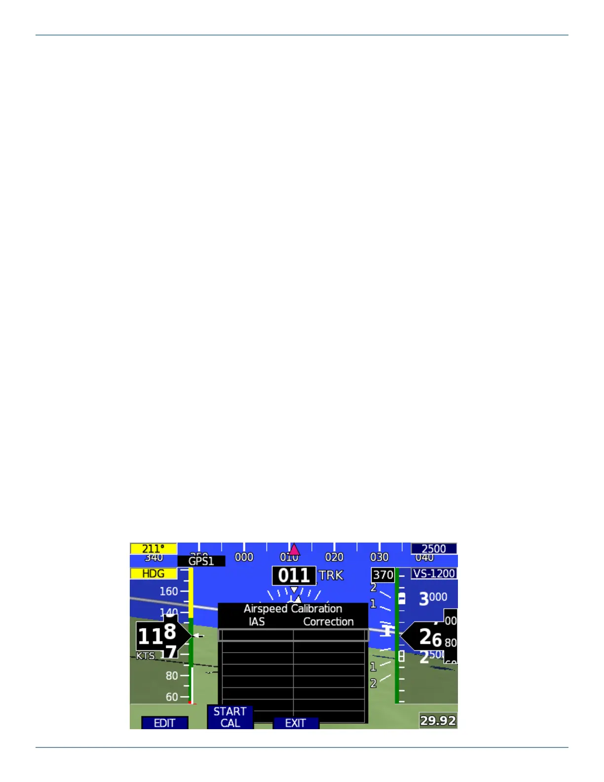 selected, a correction table is shown, over-laid on the PFD screen. The table allows for up to 8