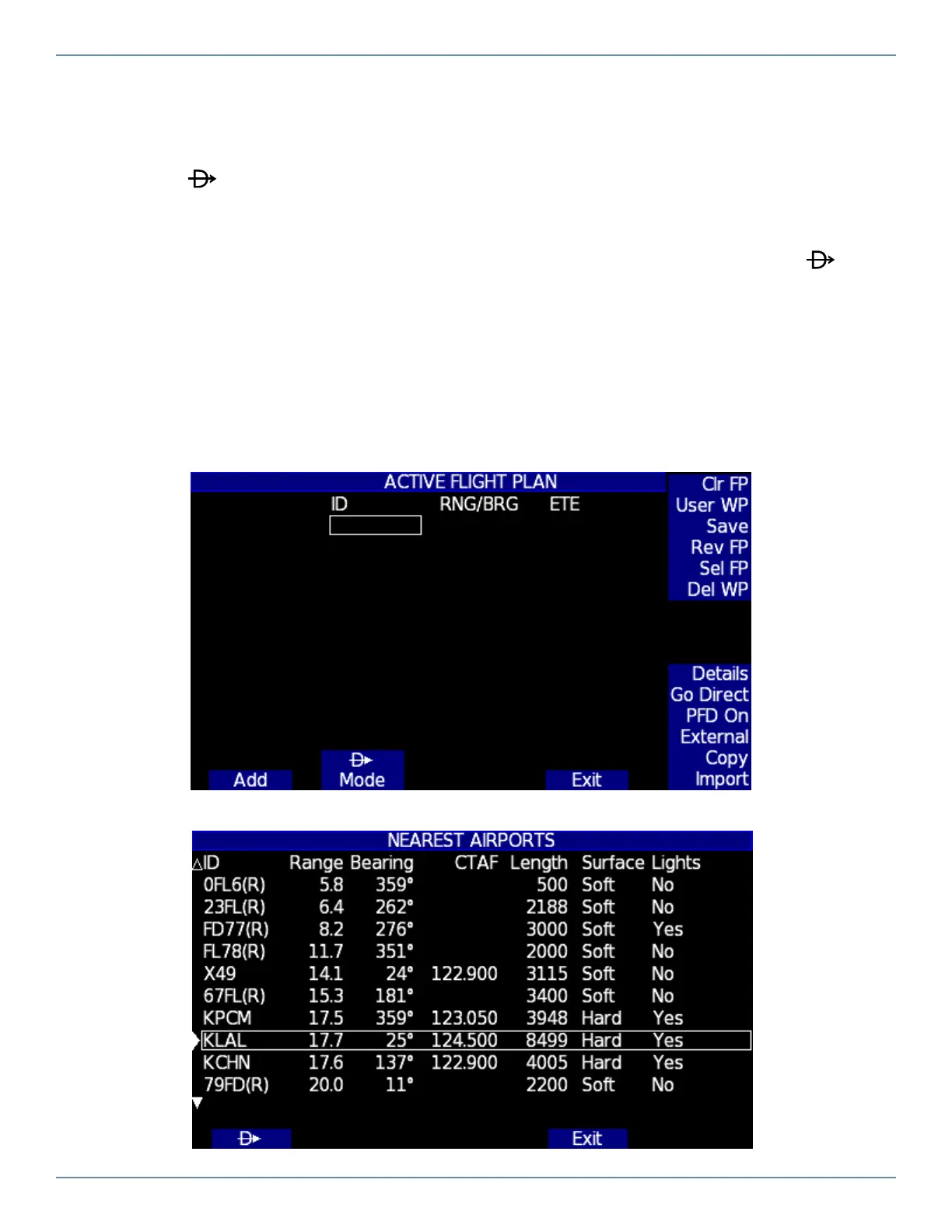 7.2.1 To Go Direct to Nearest Airport or Navaid: