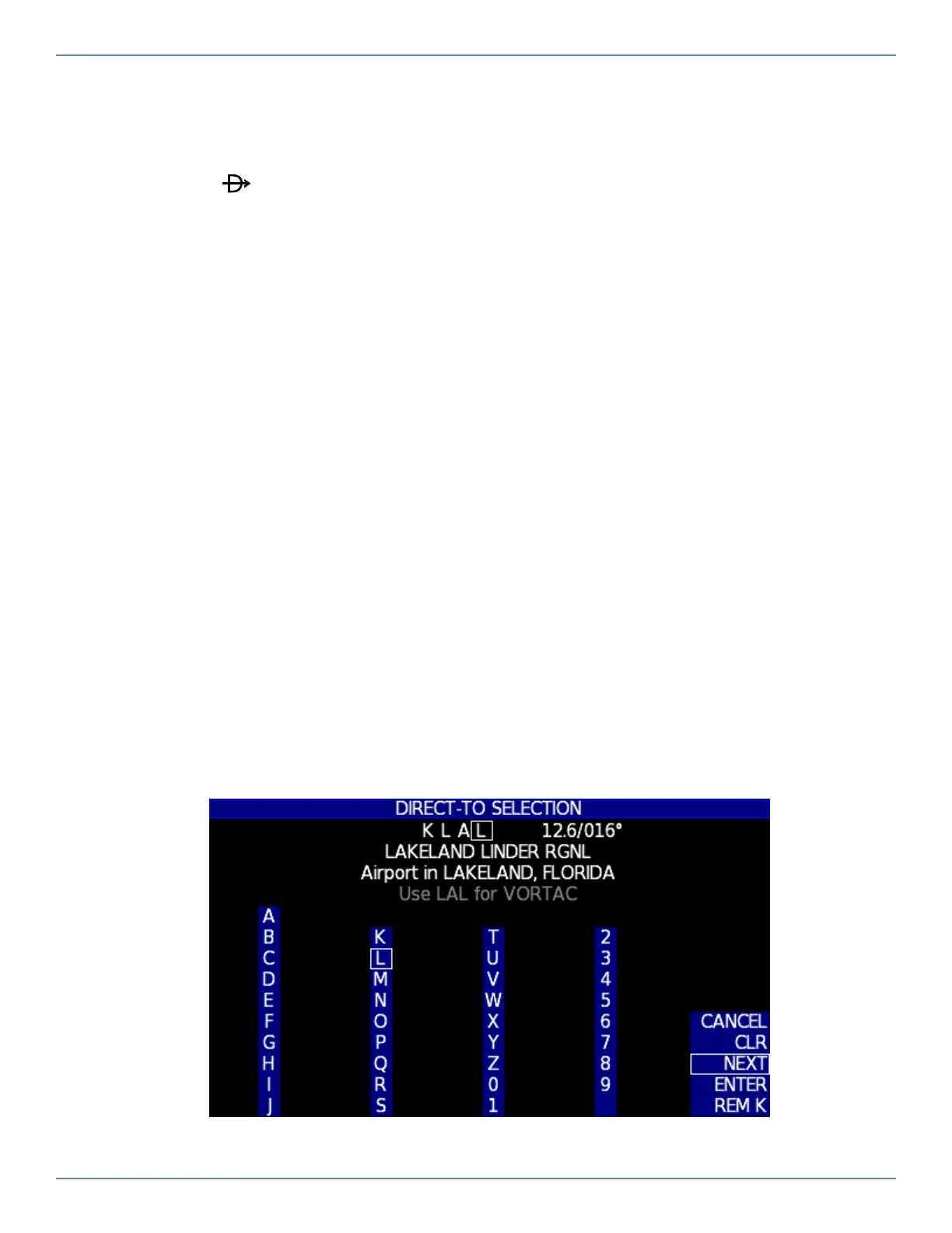 3. Enter the identifier of the waypoint you want to go to. To do this, press the softkey under the