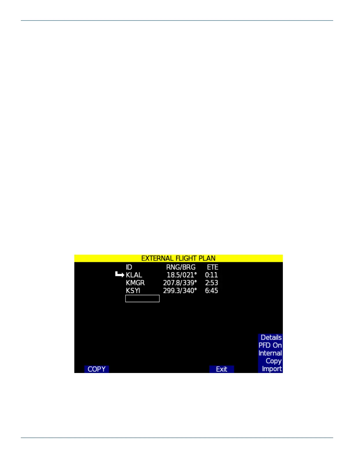 � Press COPY to overwrite the current active Internal flight plan with the waypoints for the