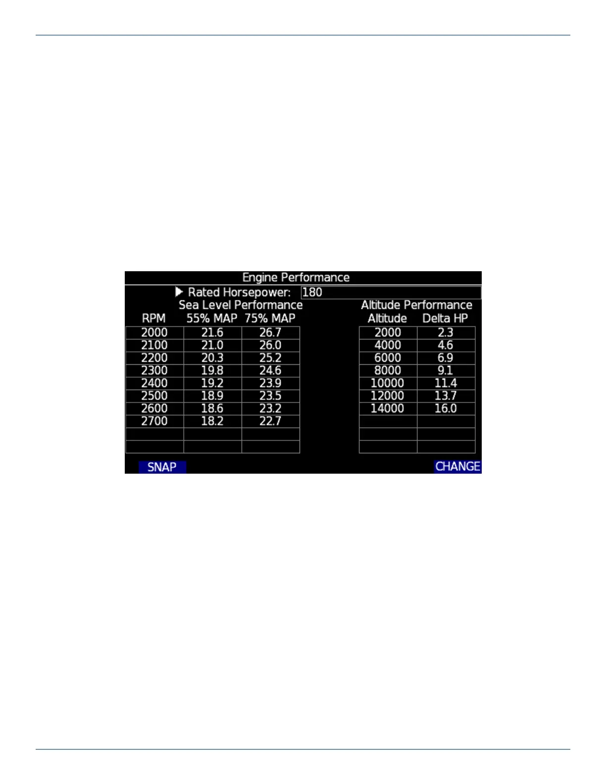 across the piston. This data is derived from the power setting chart). Estimated horsepower value