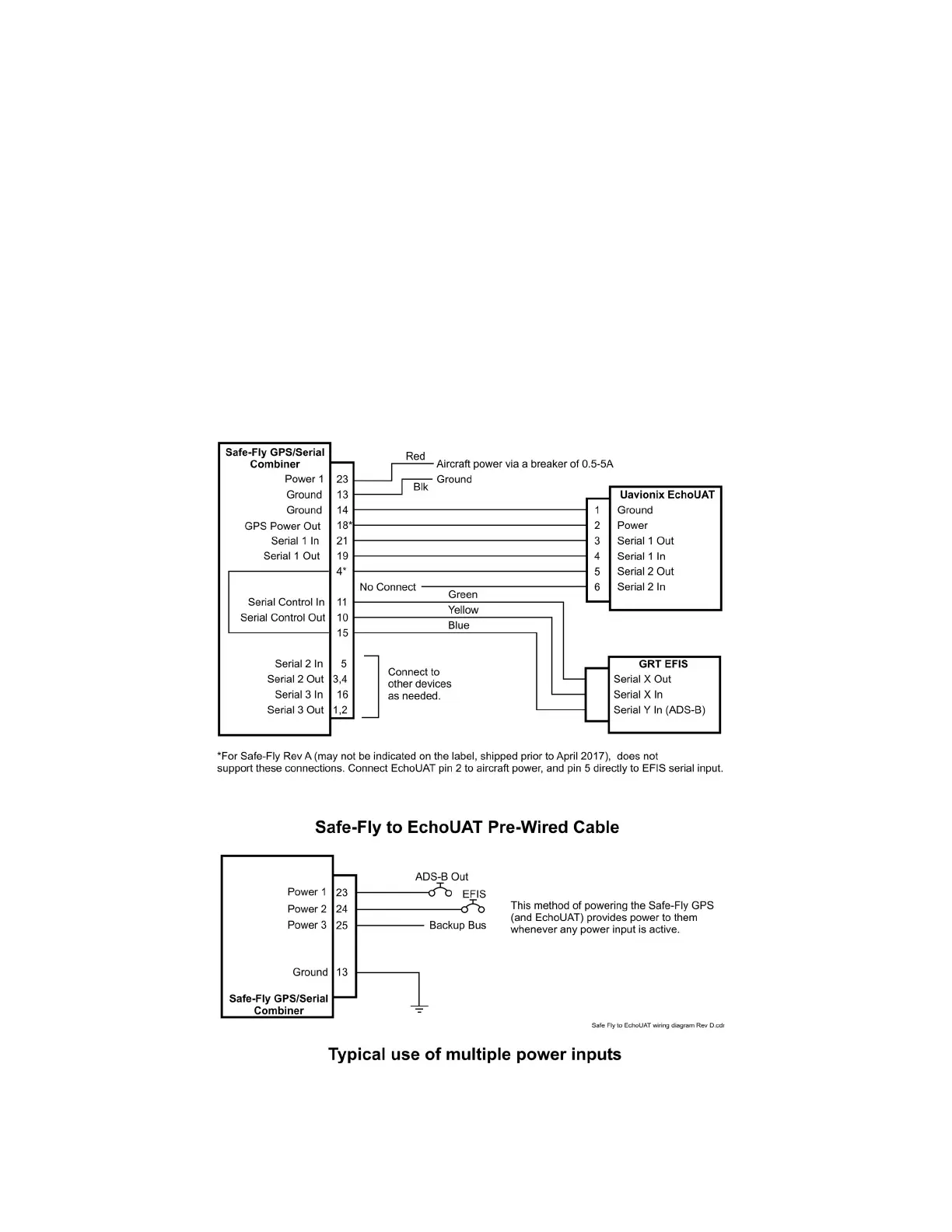 The following figure illustrates the wiring to the Safe-Fly GPS and EchoUAT, when used with a GRT