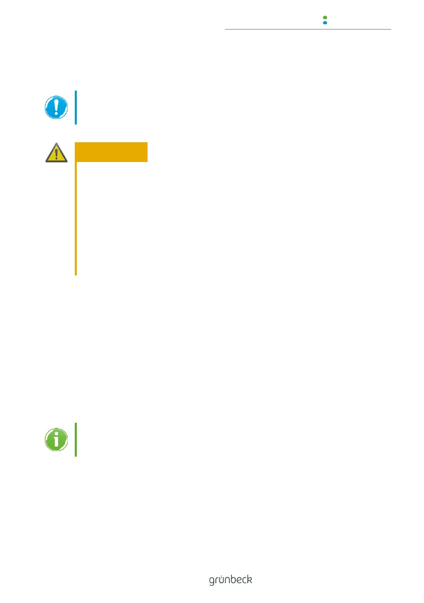► Carry out the initial filling of the pump with water only (with-