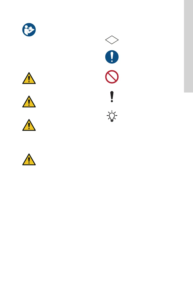 The symbols and hazard statements below may