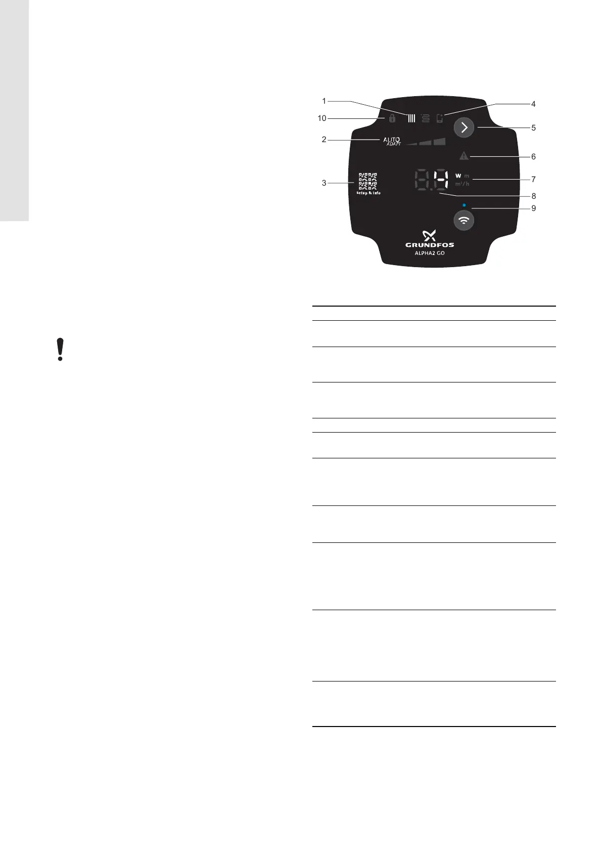 4 If lit, the pump has been set via Grundfos GO.