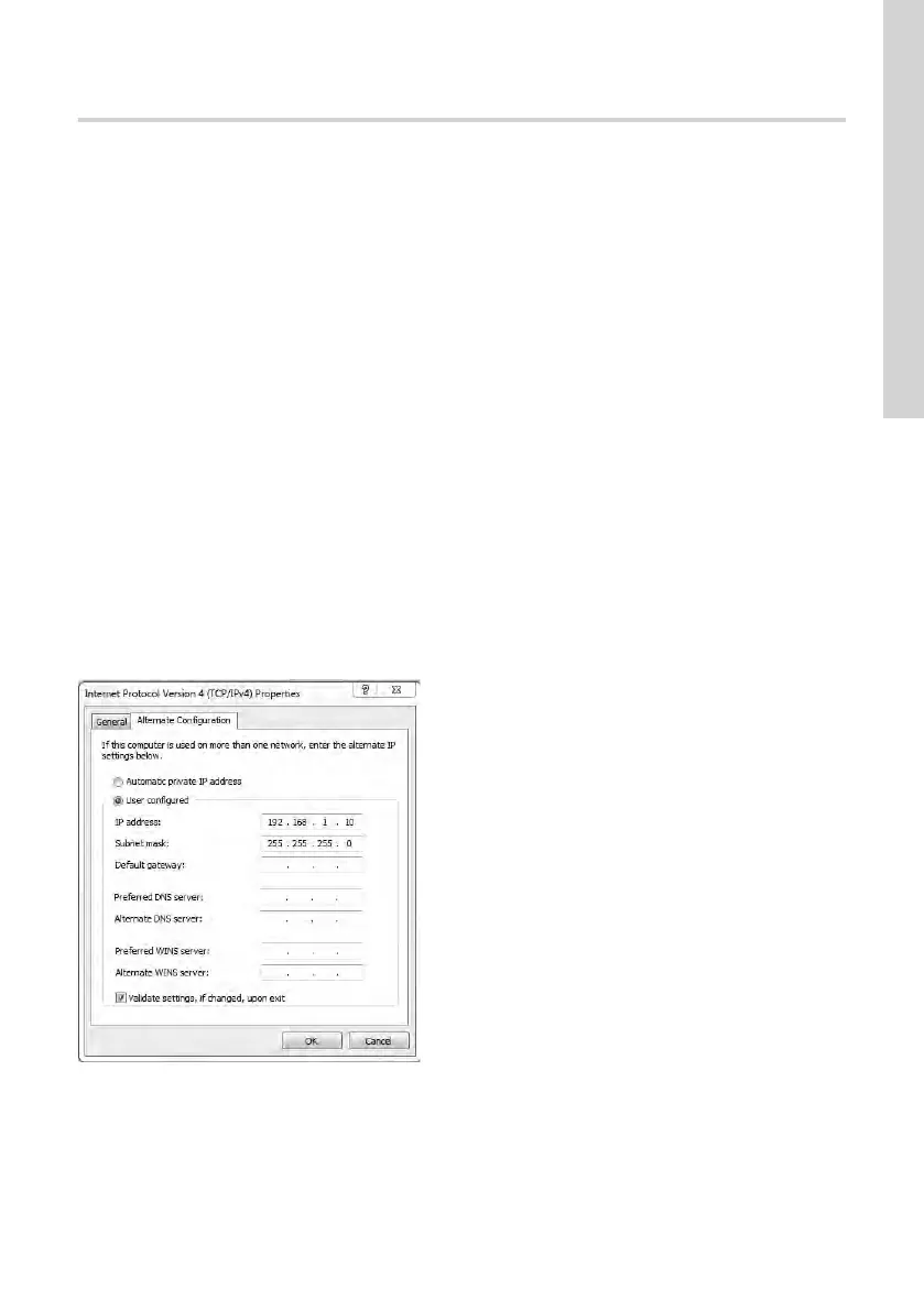 6. Select the "Alternate Configuration" tab and enter the user-configured IP address and the subnet mask you