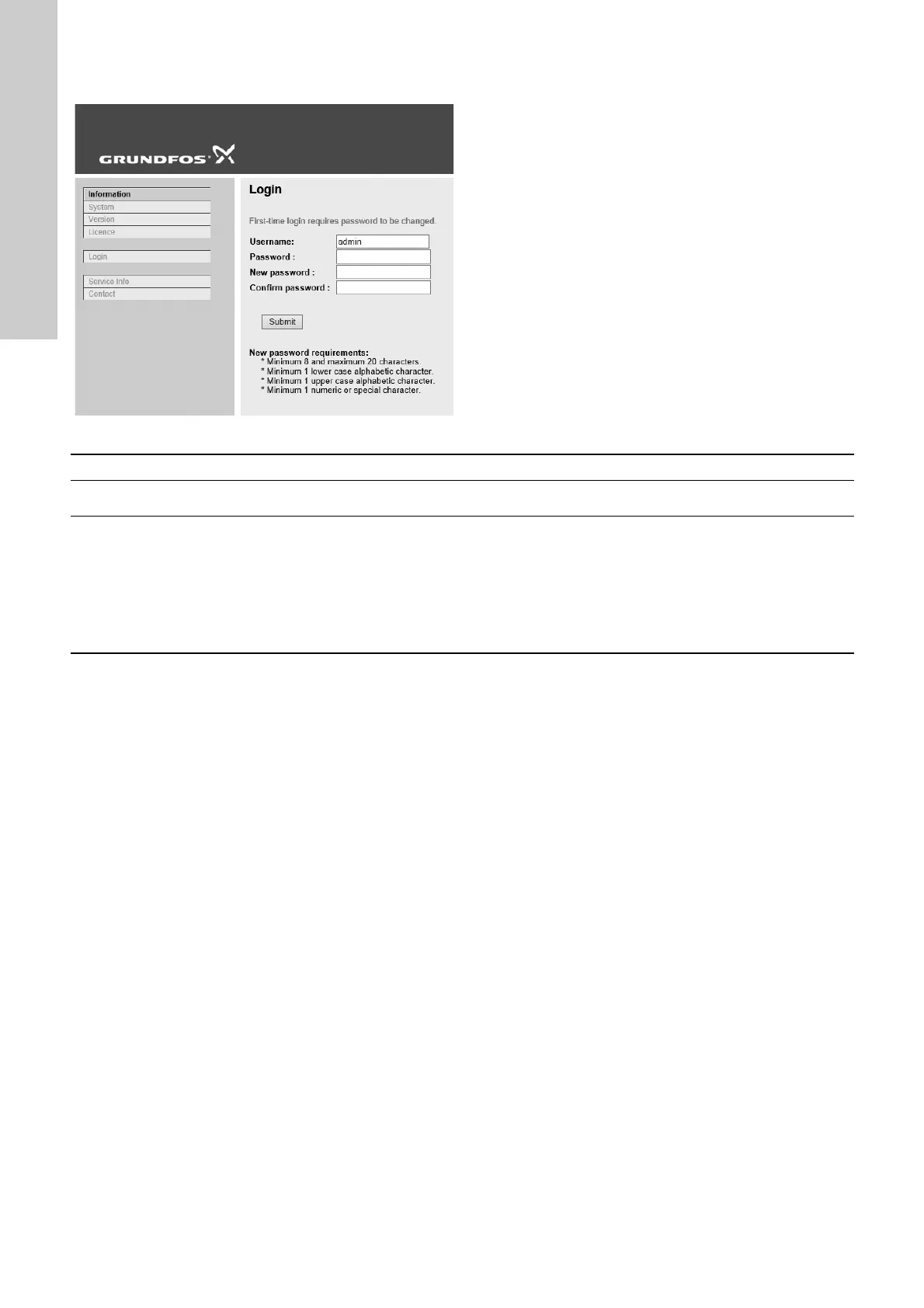 Enter password. Default: Grundfos.