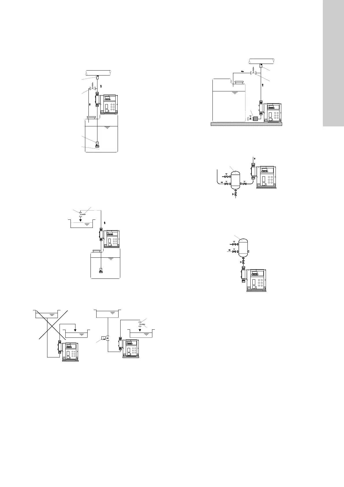 • 如果是用于非脱气性粘度与水相似的介质,可以将泵安装在水箱