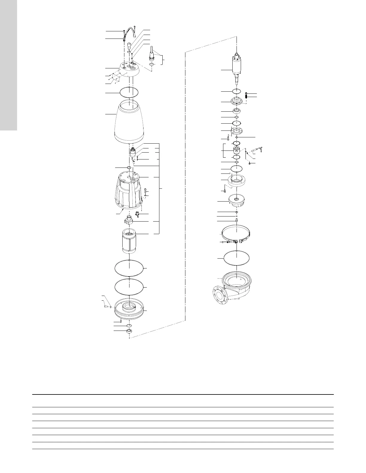Exploded view, SEV pump with SuperVortex impeller, sensor version