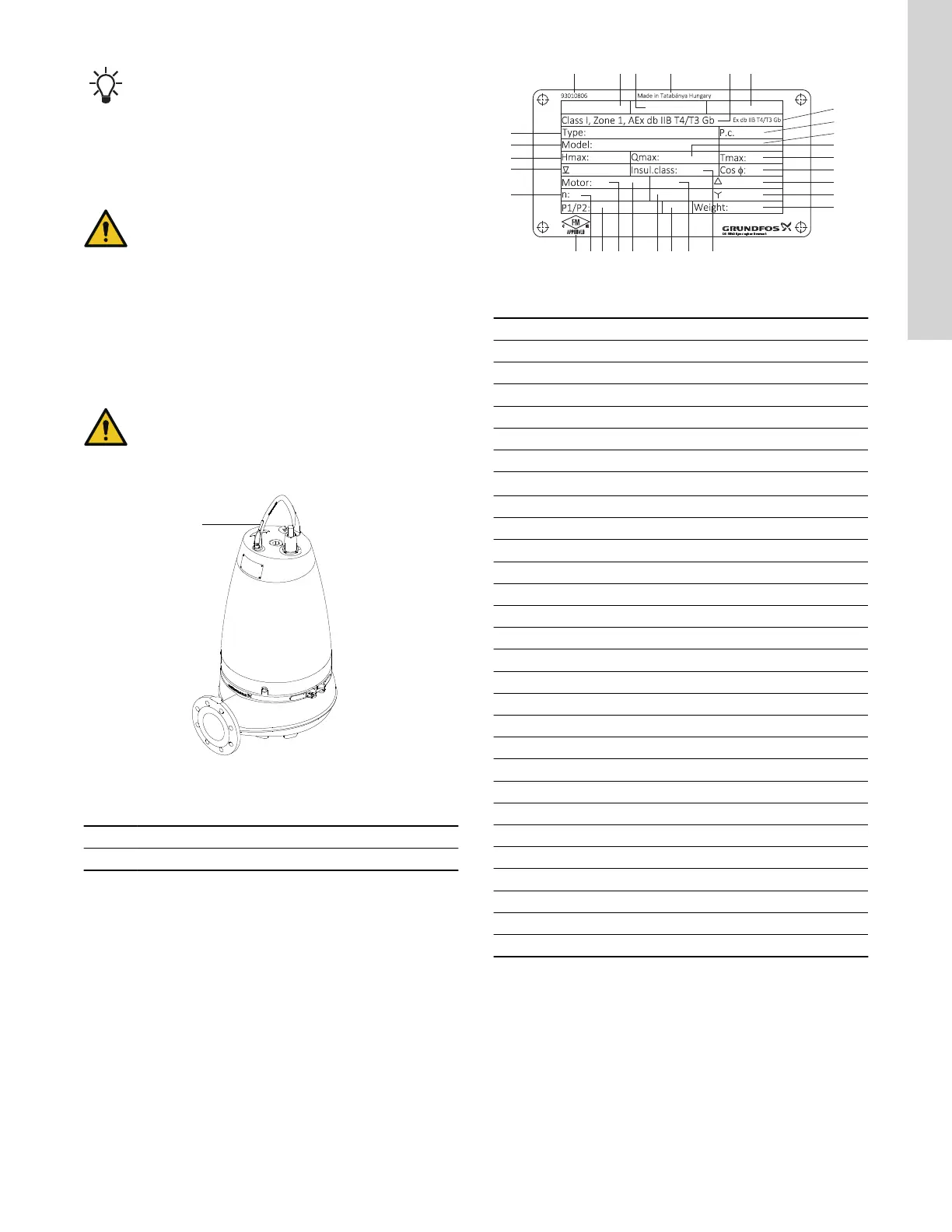 the pump. The nameplate is fitted to the side of the stator housing