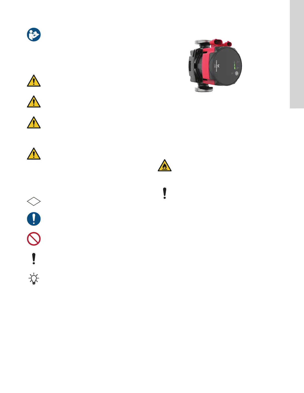 The symbols and hazard statements below may appear in Grundfos