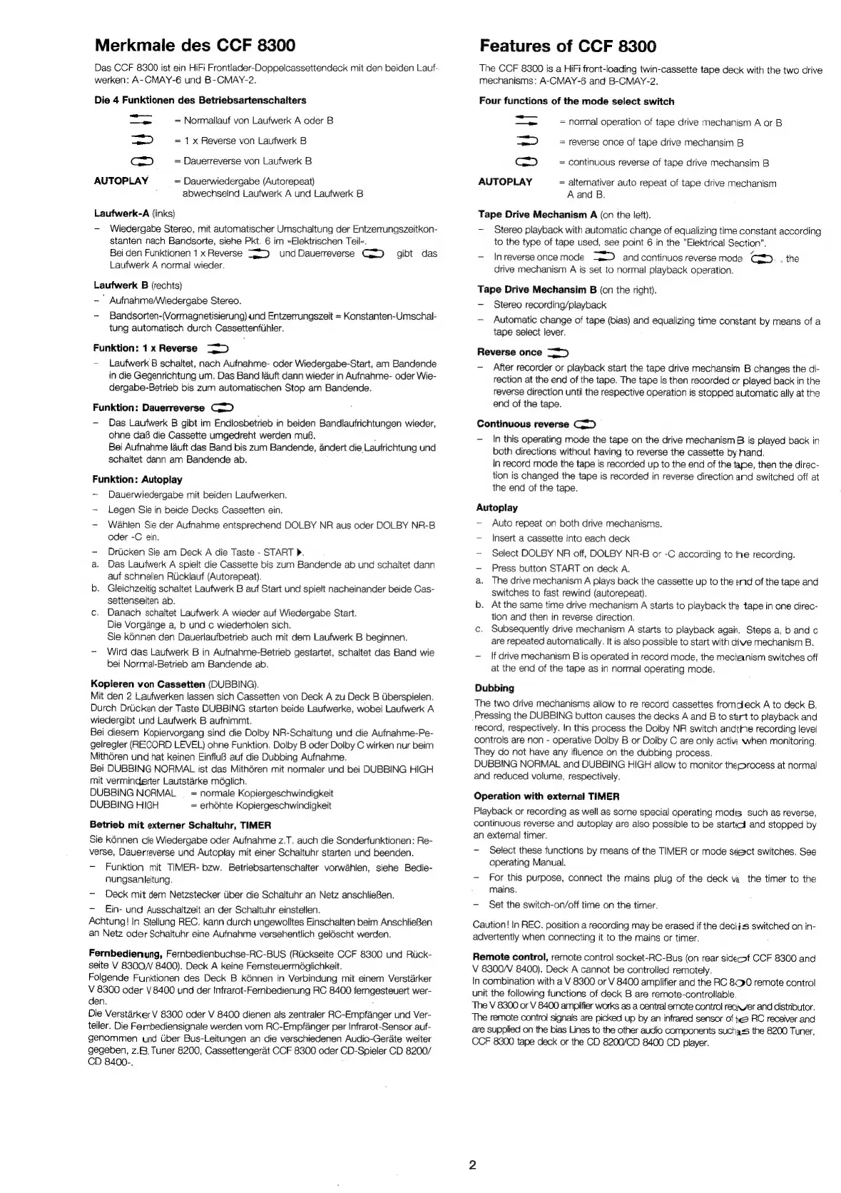 Grundig CCF 8300 - Merkmale des CCF 8300