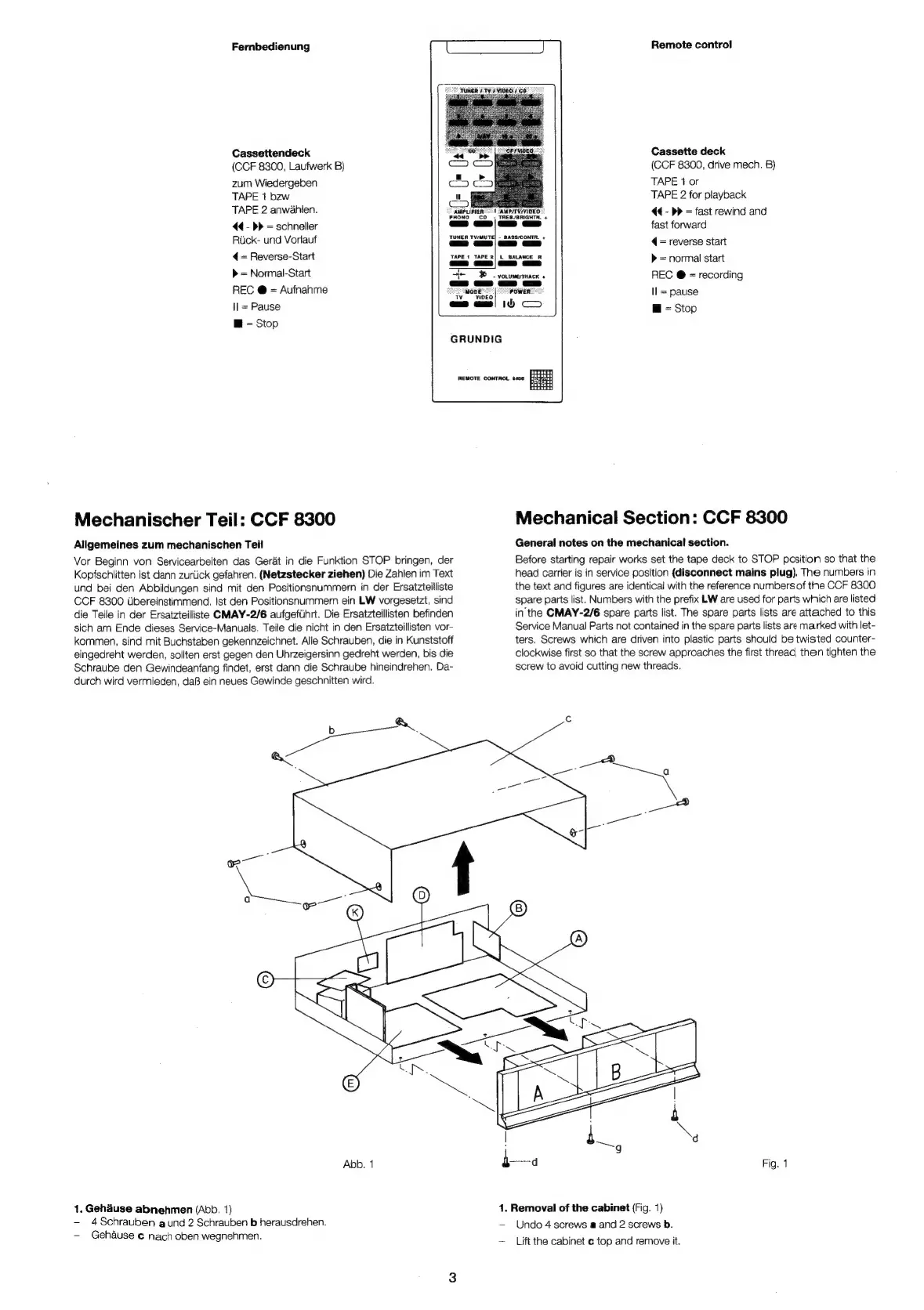 Grundig CCF 8300 - Allgemeines zum Mechanischen Teil; Gehduse Abnehmen; English; General Notes on the Mechanical Section