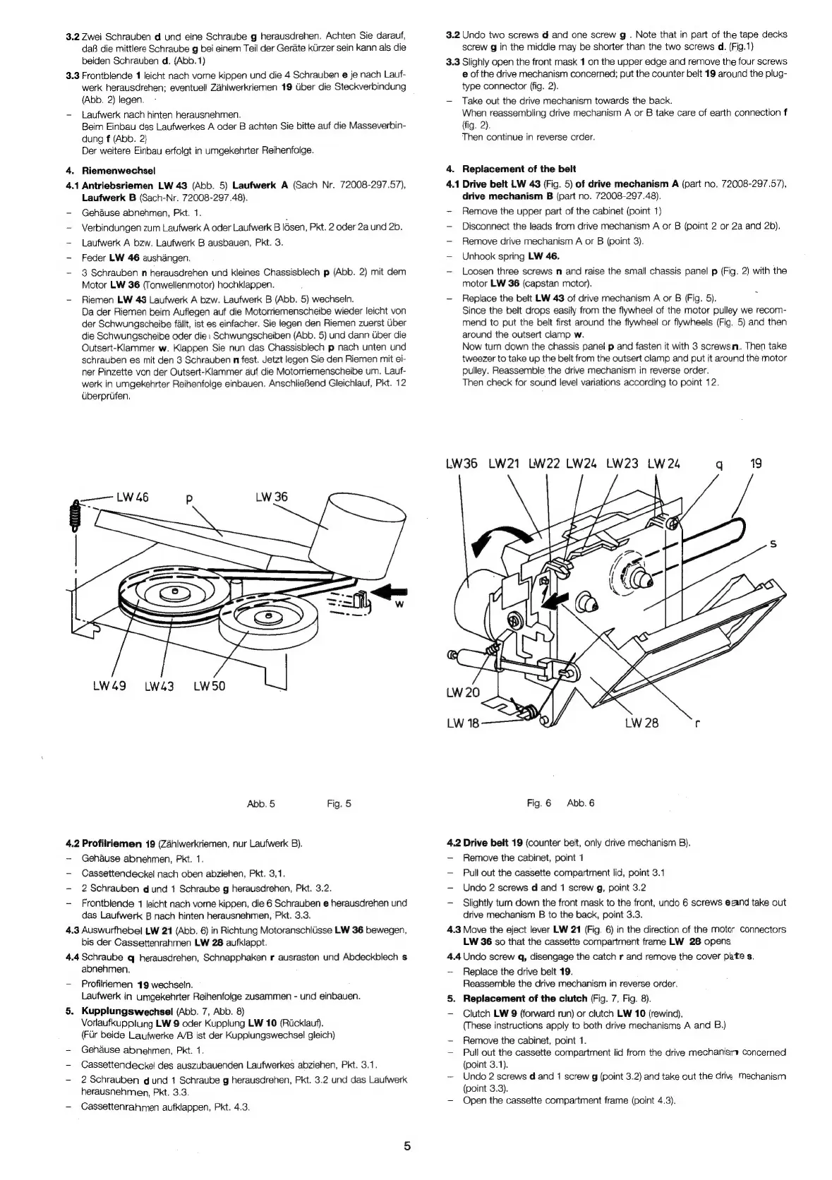 Grundig CCF 8300 - Riemenwechsel; Kupplungswechsel; 4, Replacement of the Belt; 5, Replacement of the Clutch