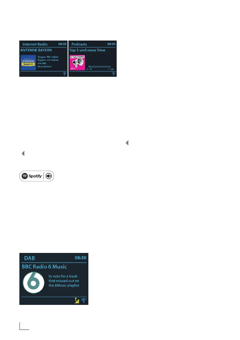 Internet radio or Podcasts mode, the device