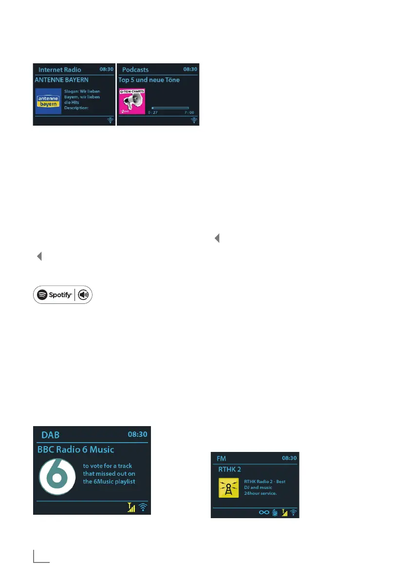 Internet radio or Podcasts mode, the device