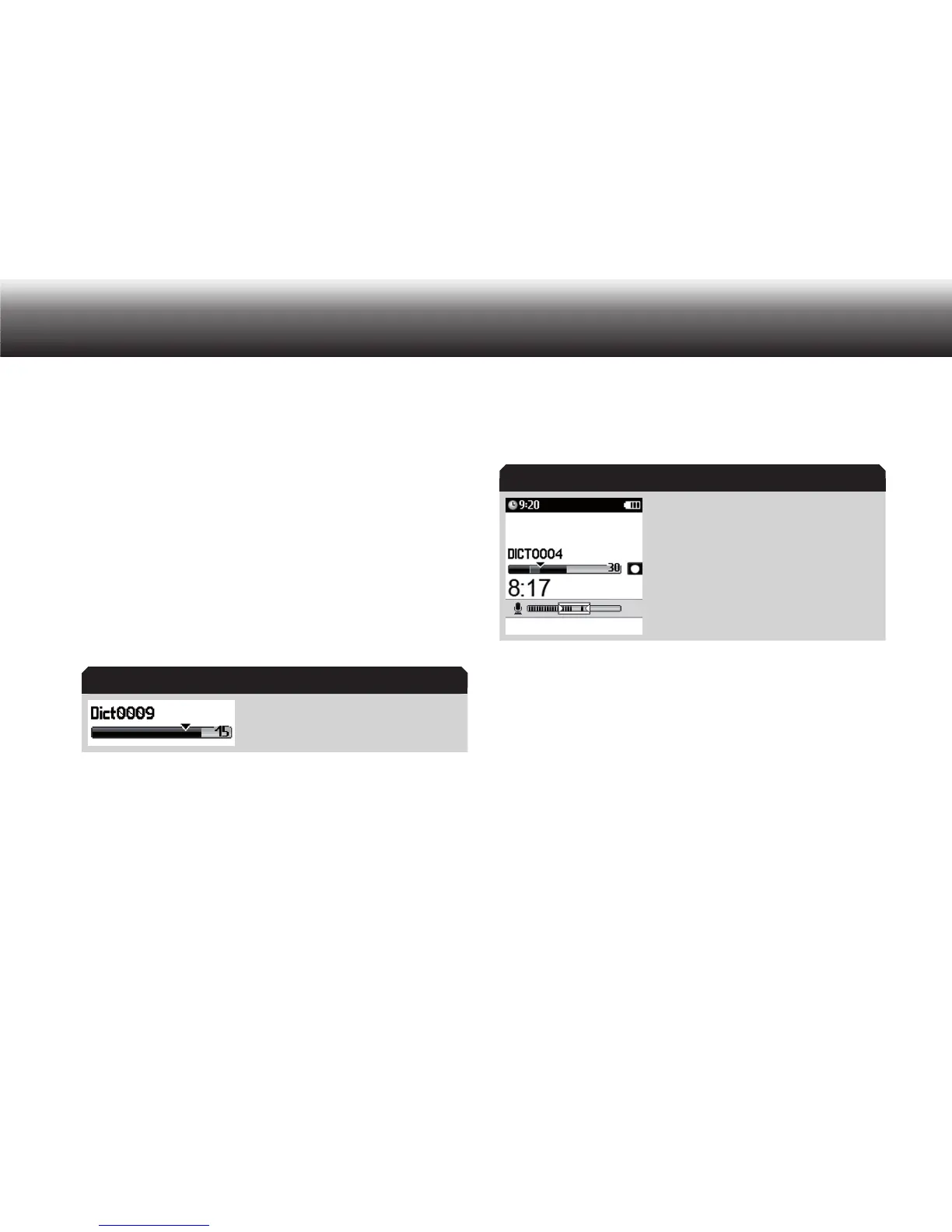 Select the desired dictation by using the up-down navigation but- x