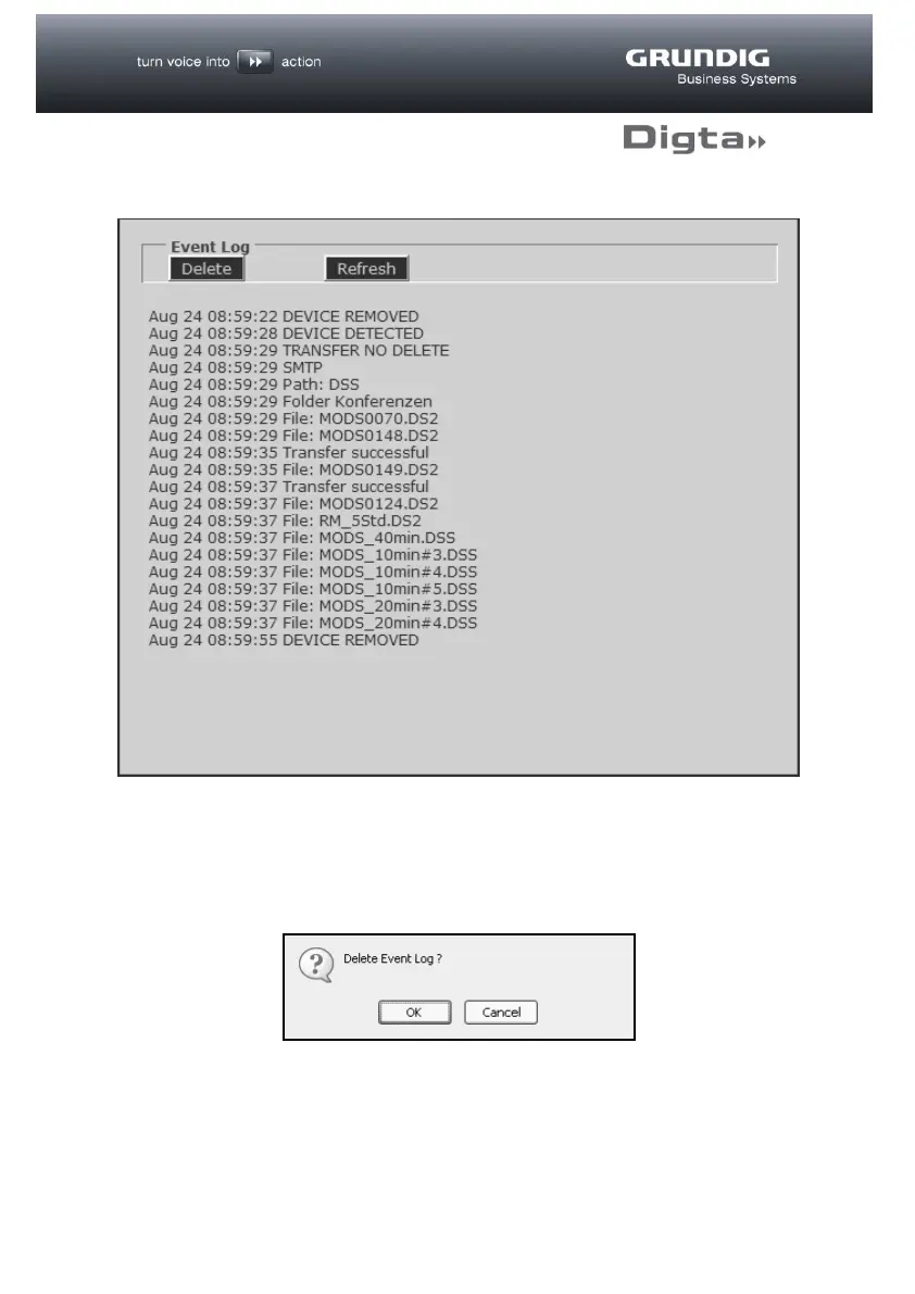 The Event Log records all the activities of the Digta W/LAN-Adapter. This makes it