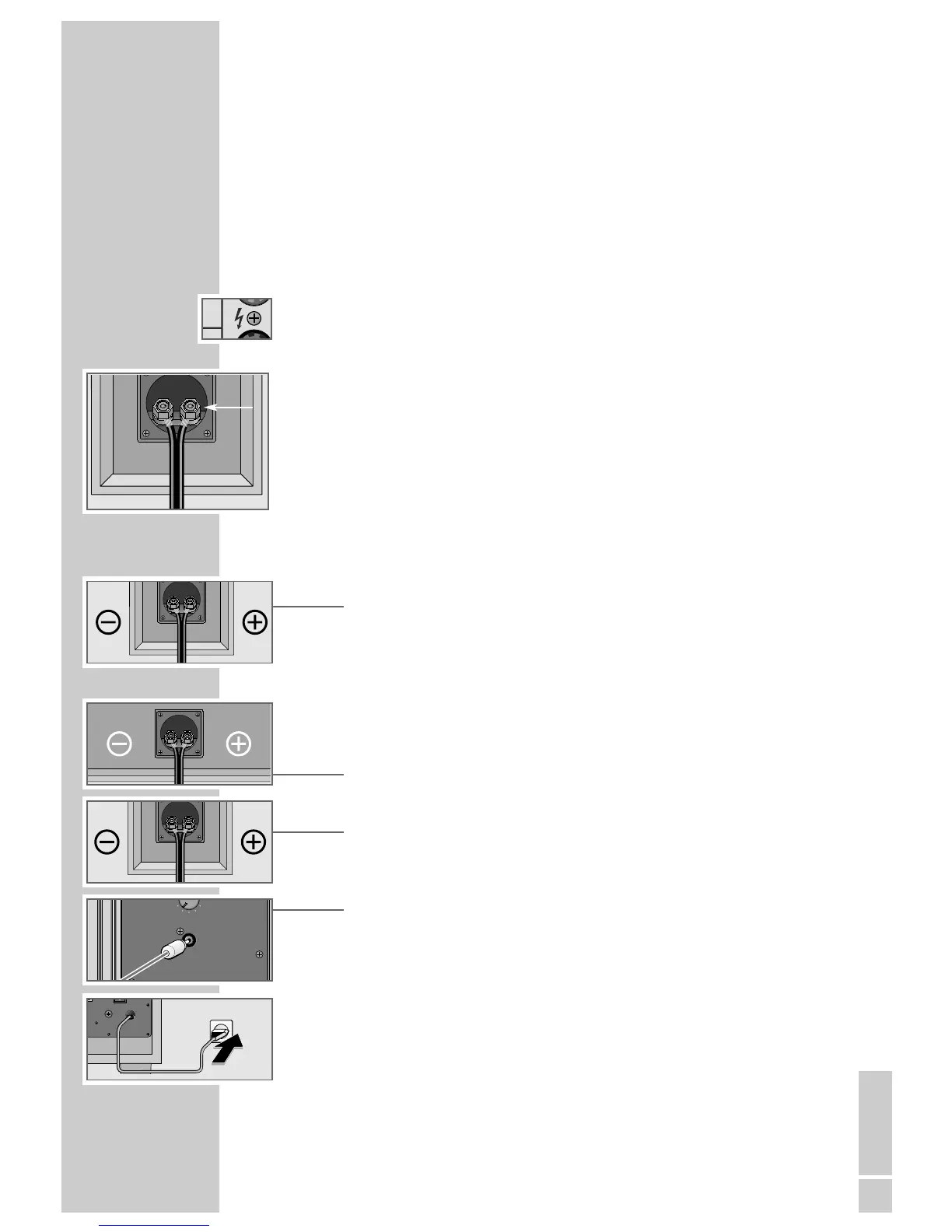 and outputs, and the unmarked cable to the »–«. Connect the loudspeaker