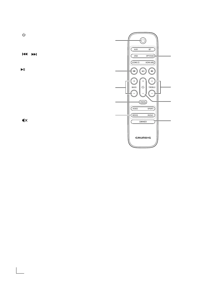 4 BASS +/- Ajuster le niveau de basse.