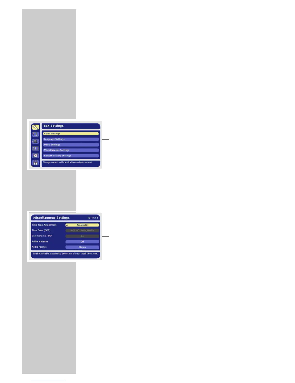 in the »Set time zone« menu option.
