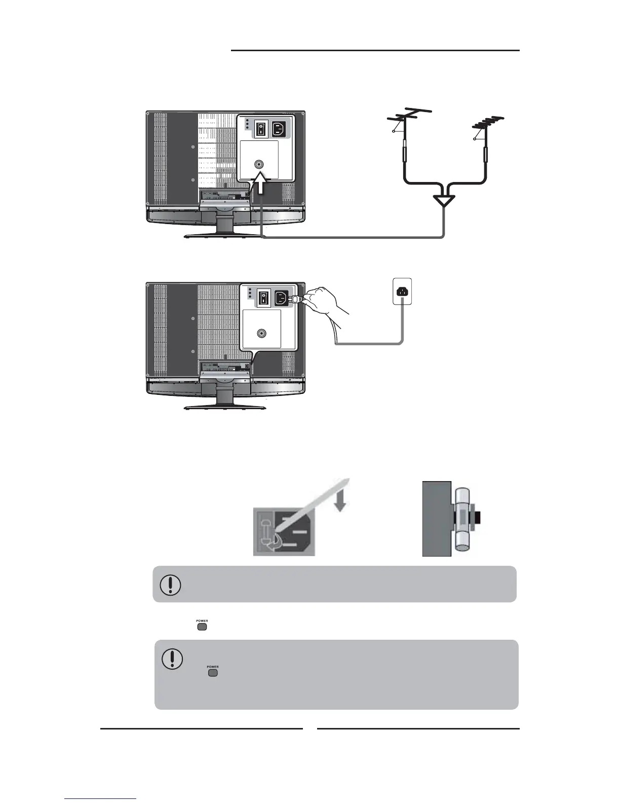 Connect the AC power cord at the back of the TV and connect the power cord to wall