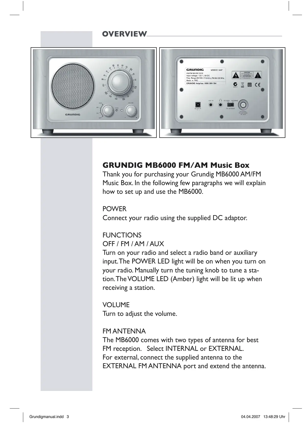 Thank you for purchasing your Grundig MB6000 AM/FM