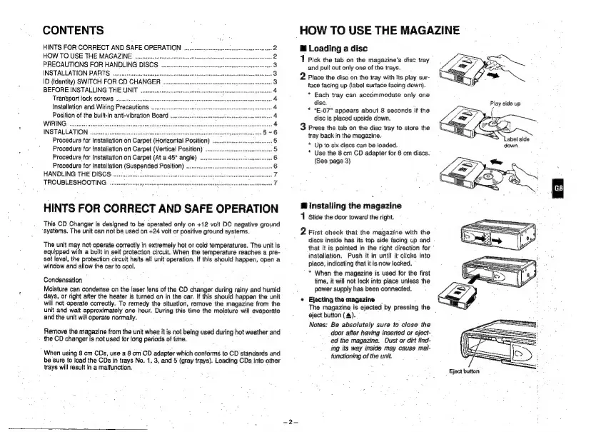 Grundig MCD 36 - HINTS FOR CORRECT AND SAFE OPERATION; Condensation; 8 cm CD Handling; HOW TO USE THE MAGAZINE