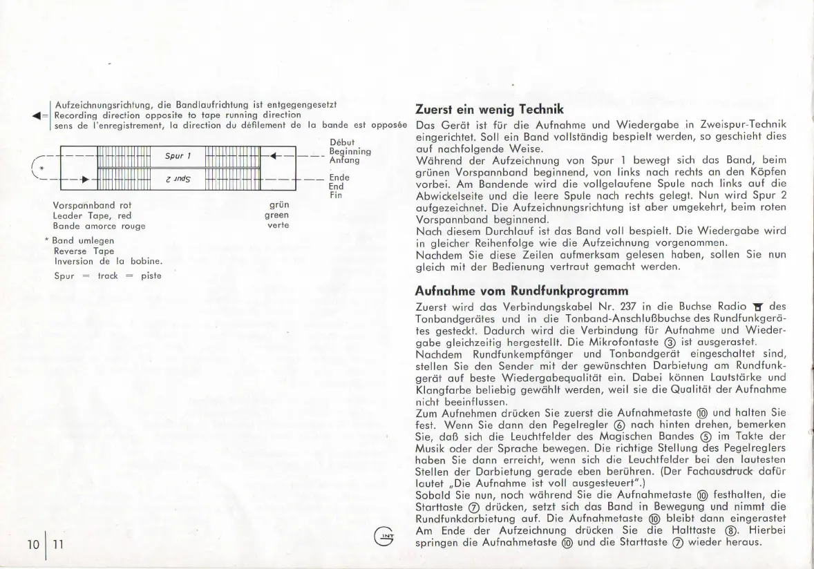 Nachdem Rundfunkempfânger und Tonbandgerdt eingeschaltet sind,