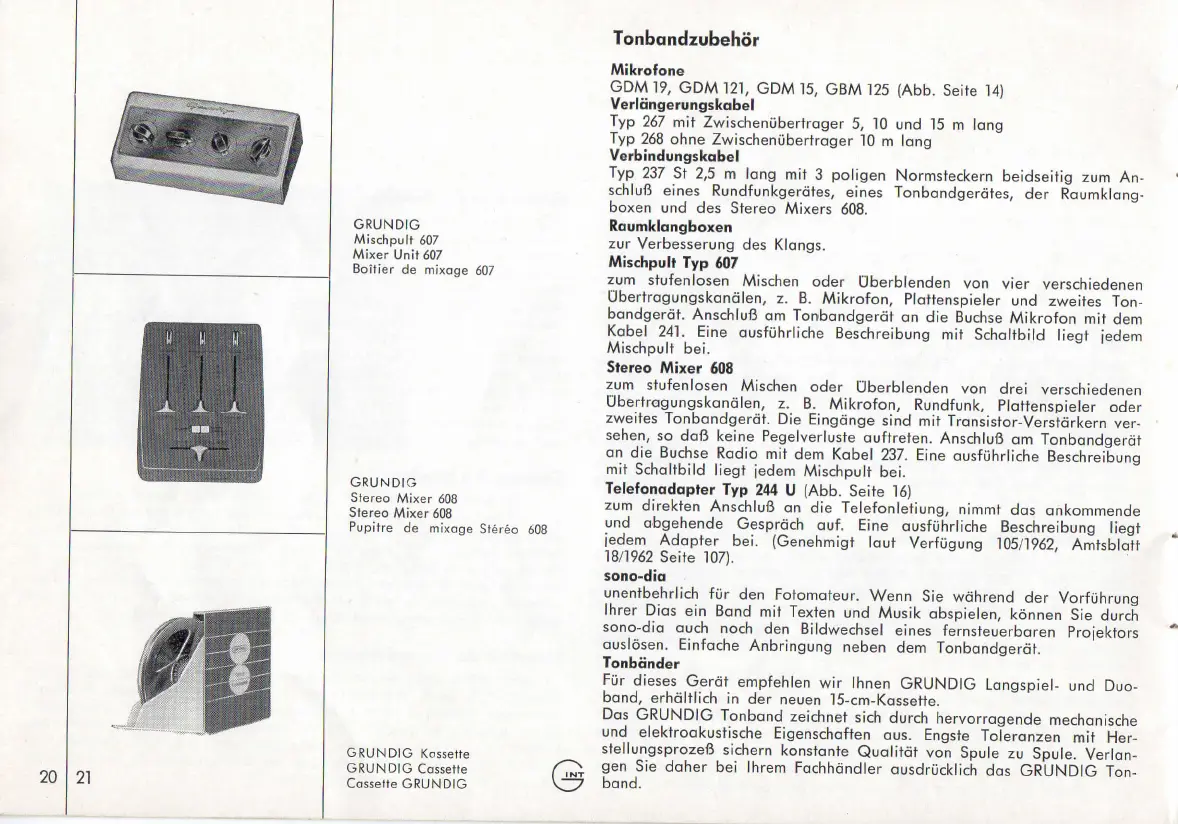 Tonbandgerât. Die Eingânge sind mit Transistor-Verstdrkern ver-