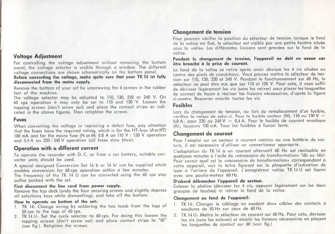 L'adaptation du TK 14 à un courant alternatif 60 Hz est réalisable en