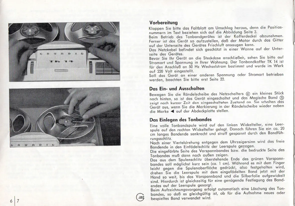 Stromart und Spannung in Ihrer Wohnung. Der Tonbandkoffer TK 14 ist