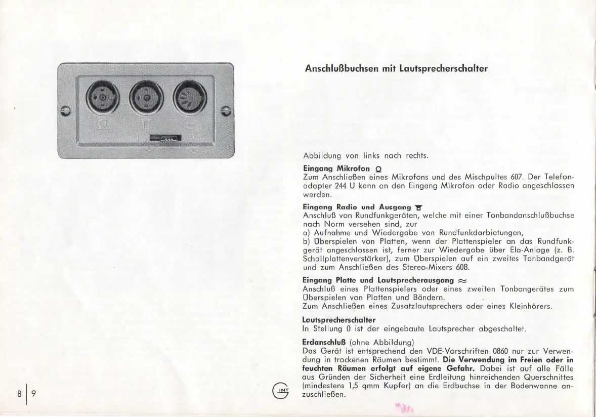 und zum Anschliefien des Stereo-Mixers 608.