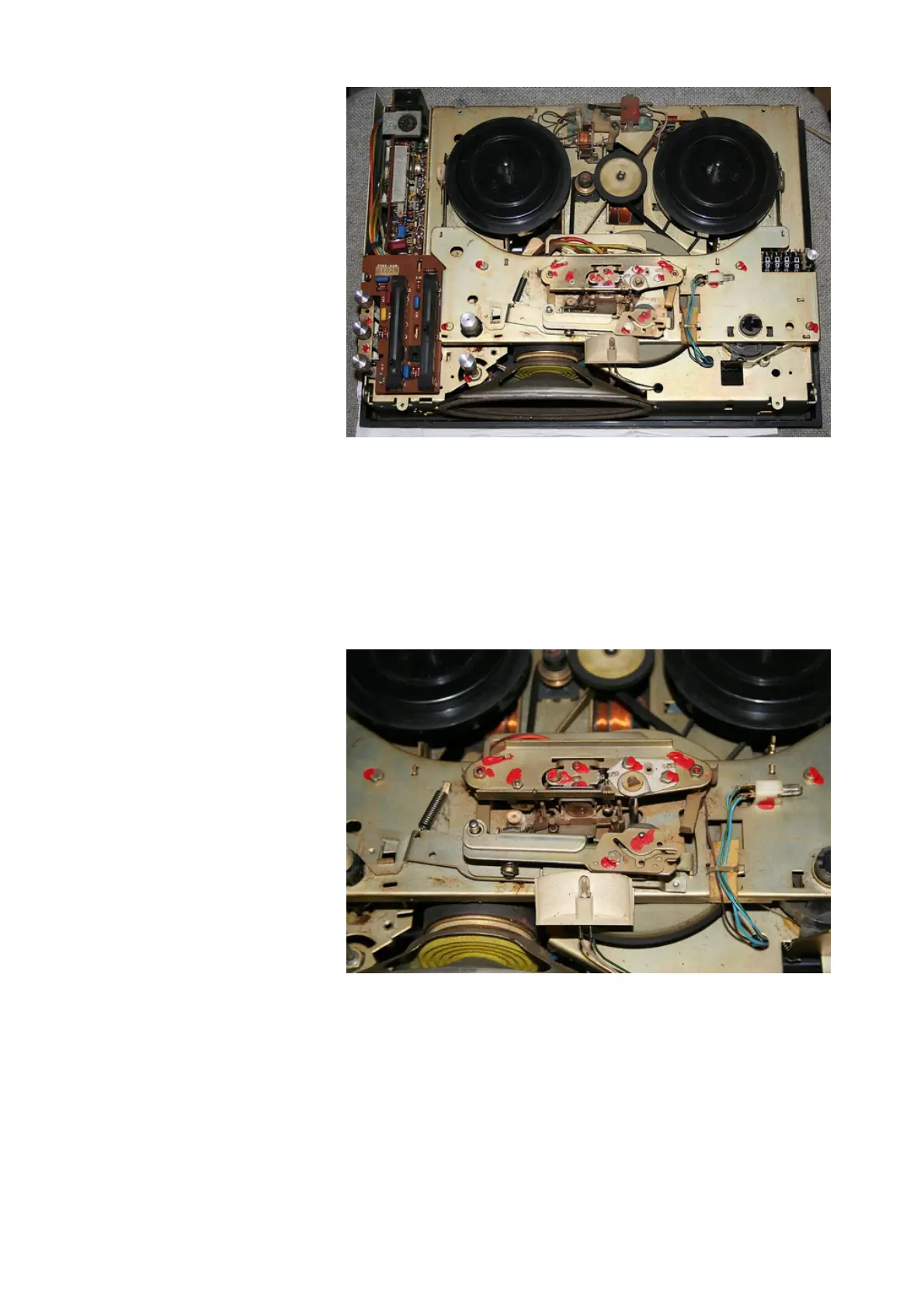 The tape guides and heads of the device. Here a thorough cleaning was necessary. In the foreground the control light