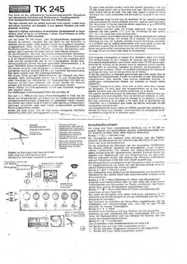 Grundig TK 245 - Connecting Sockets; Microphone Input Sockets; Line Input Sockets; Earphone Output