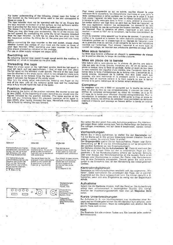 Grundig TK 245 - Recording Procedures; Preparations for Recording; Monitoring Recordings; Recording Process
