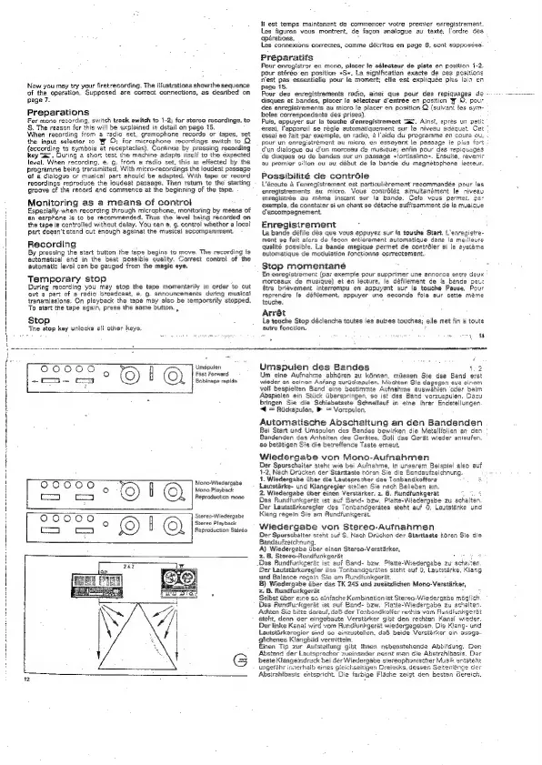 Grundig TK 245 - Tape Handling and Playback; Tape Rewinding and Fast Forward; Automatic Stop Function; Mono Playback