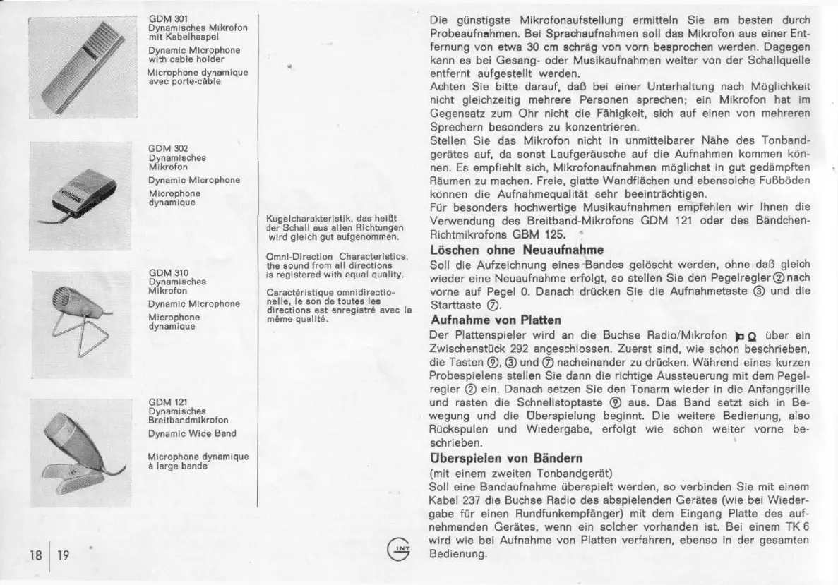 Stellen Sie das Mikrofon nlcht in unmittelbarer Nllhe des Tonband-