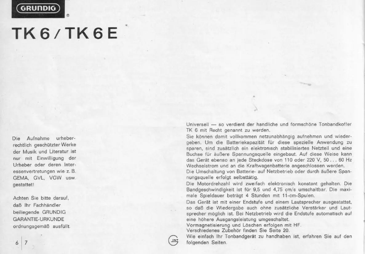 beiliegende GRUNDIG