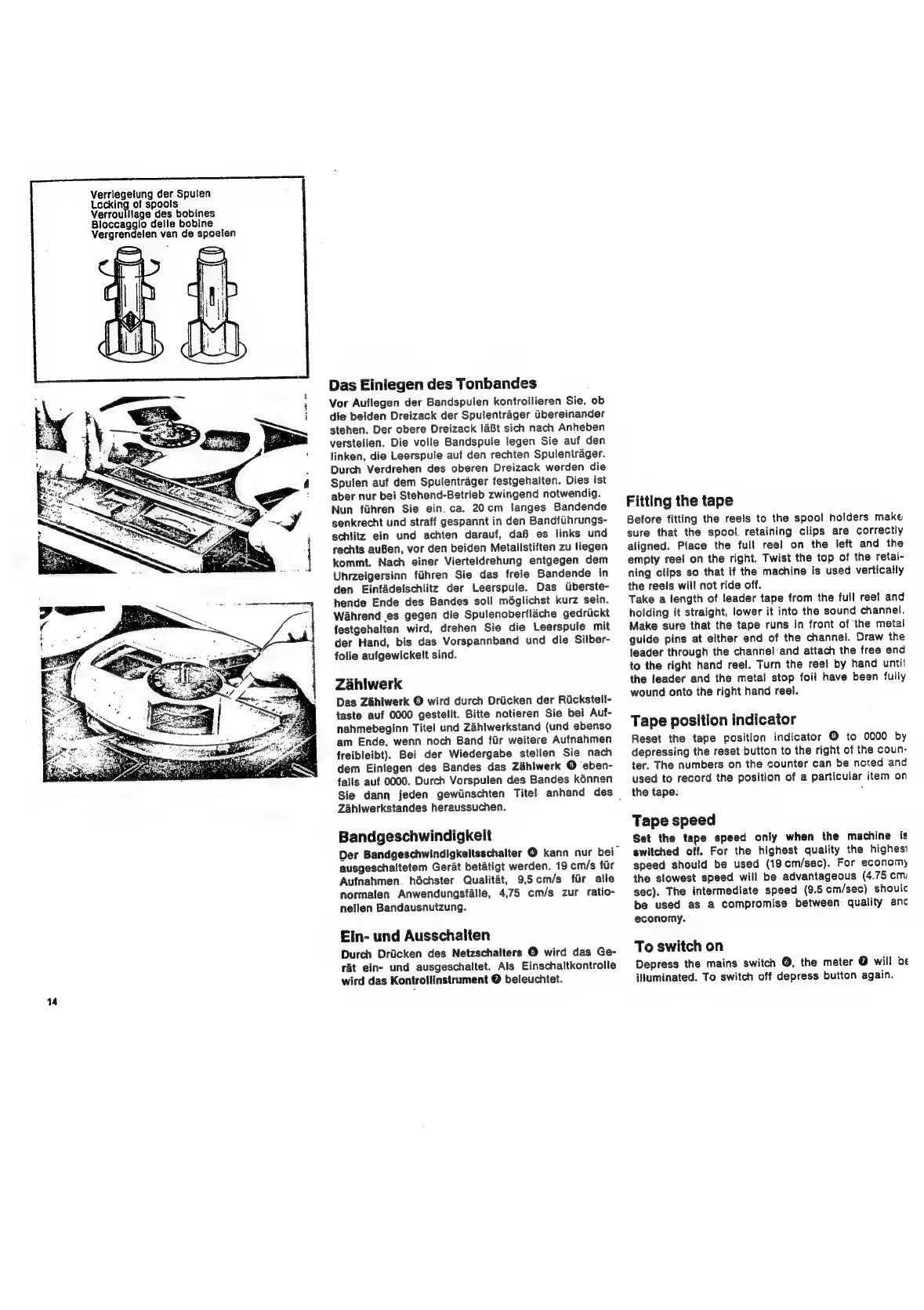 Grundig TK 747 - Tape Handling and Operation; Fitting the Tape; Tape Position Indicator; Tape Speed