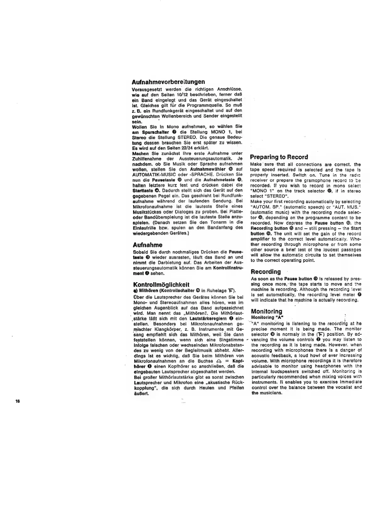 Grundig TK 747 - Recording Operations; Preparing to Record; Recording; Monitoring
