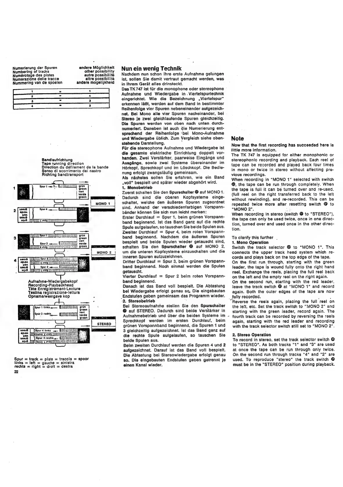 Grundig TK 747 - Technical Details of Operation; Mono and Stereo Operation