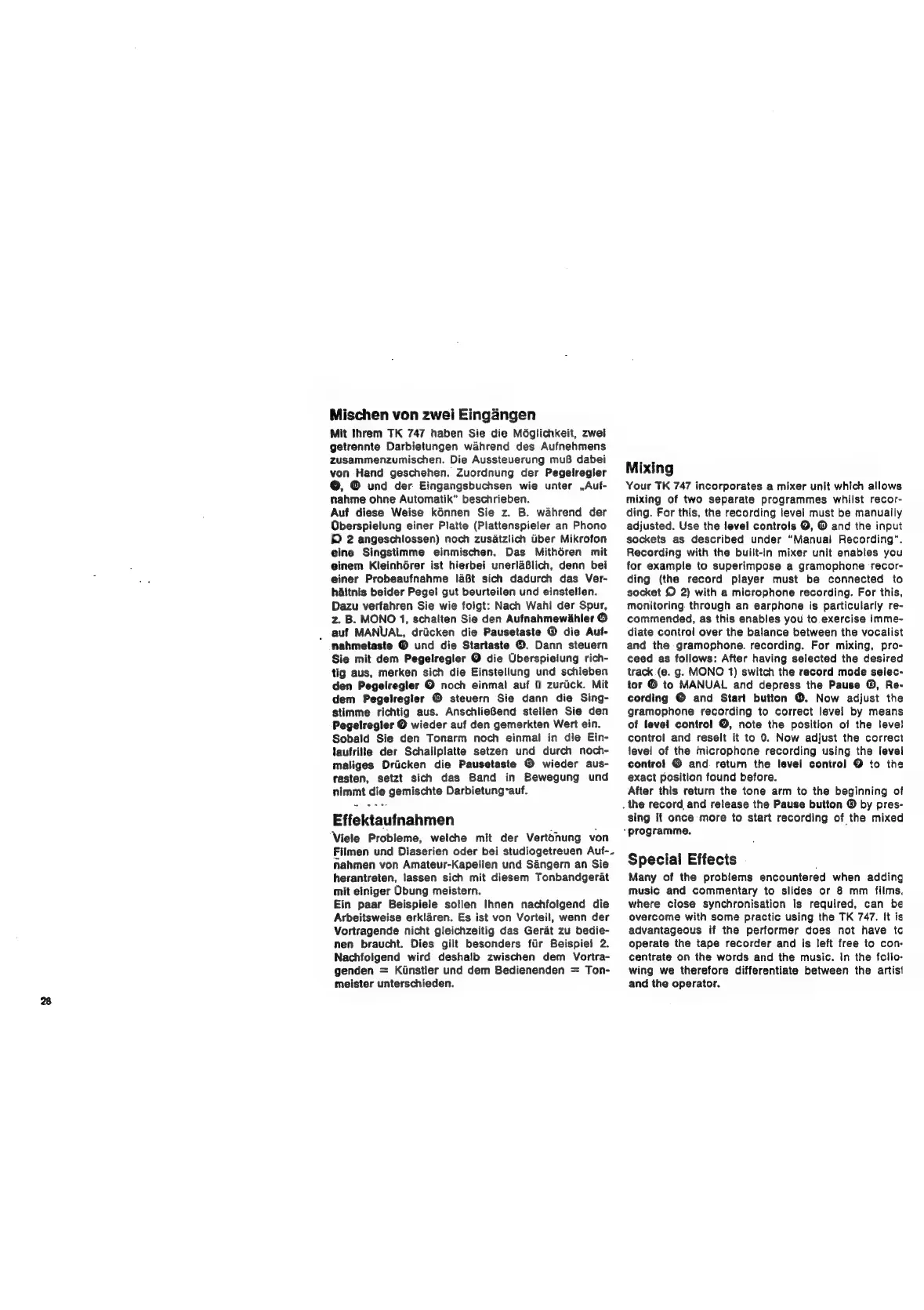 Grundig TK 747 - Advanced Recording Techniques; Mixing Two Inputs; Special Effects Recordings
