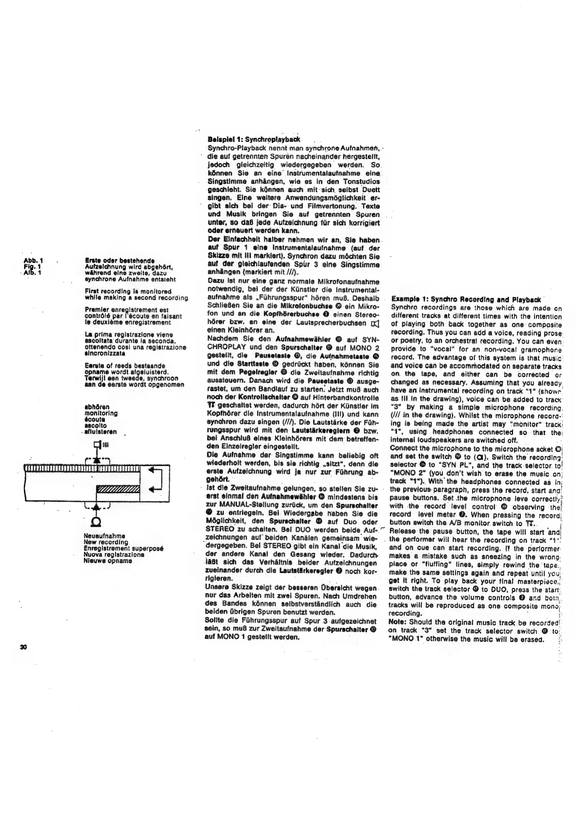 Grundig TK 747 - Synchro Recording and Playback; Synchro Recording Process