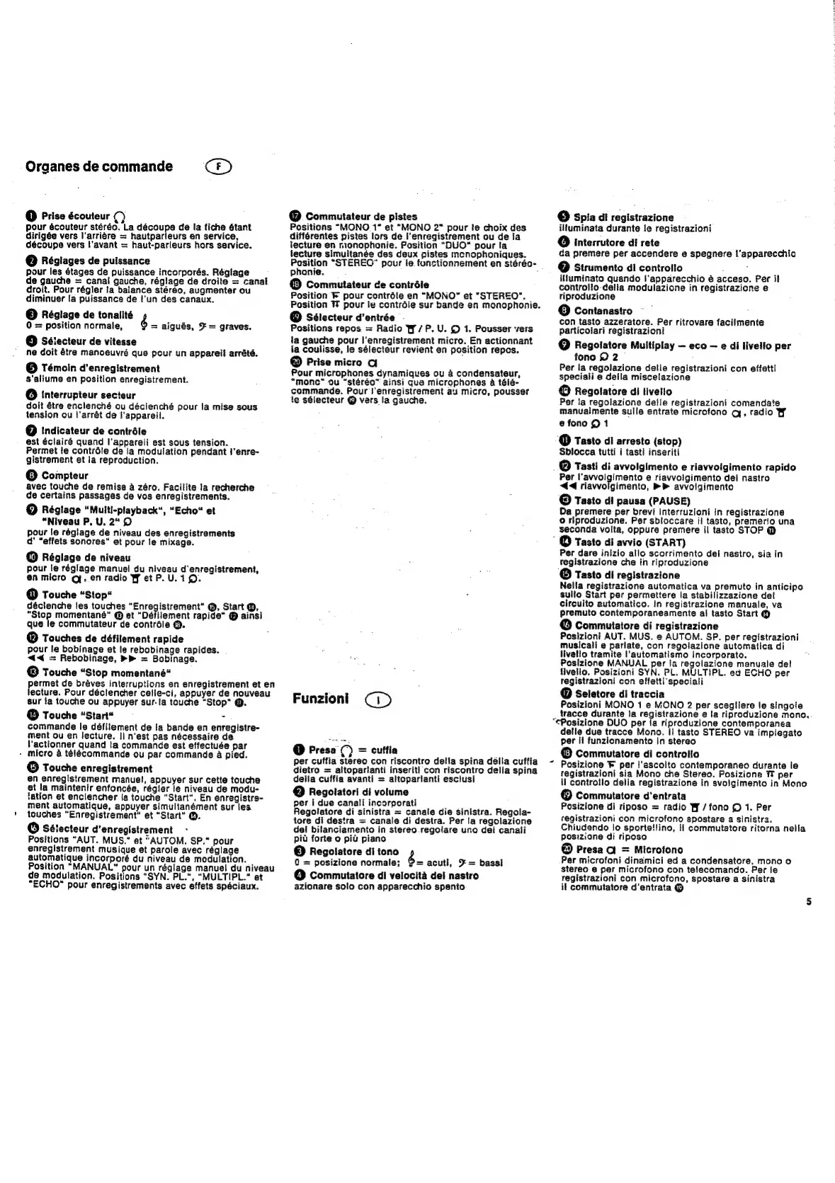 Grundig TK 747 - Control Functions; Monitoring;Via Tape Monitoring Selector; Input Selector; Microphone Socket