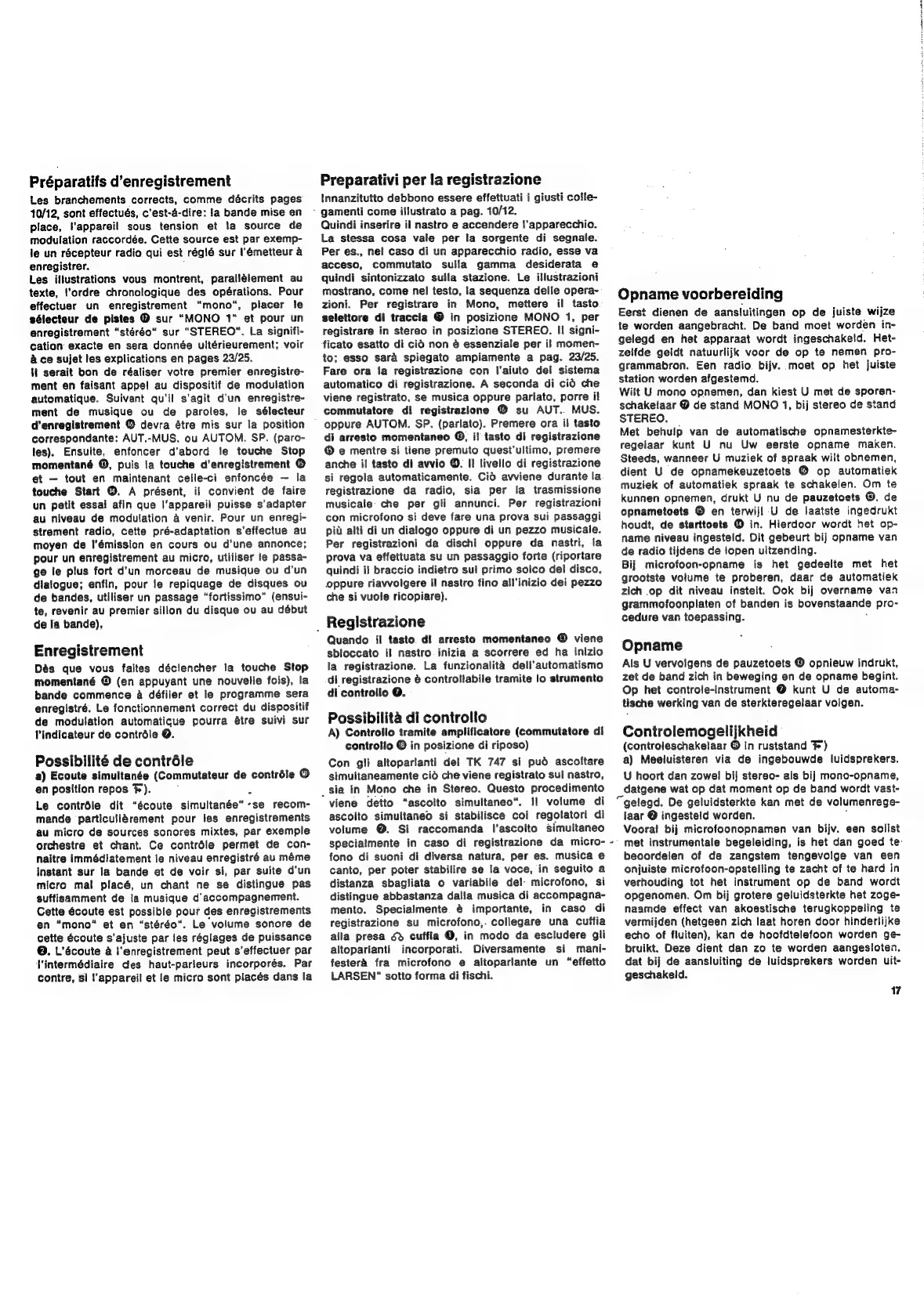 Grundig TK 847 - Controlemogelijkheid